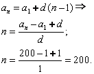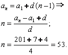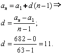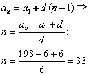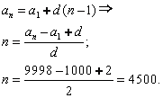 Нам известны все составляющие данной формулы, кроме номера n последнего члена прогрессии. Найдем его из формулы вычисления n-ого члена арифметической прогрессии: