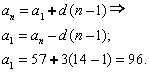 в) Так как задан четырнадцатый член арифметической прогрессии, то мы имеем следующие условия:
