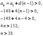 Так как необходимо найти номер первого положительного члена этой прогрессии, составим неравенство: