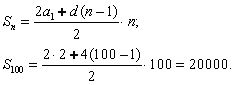 Будем использовать формулу для вычисления суммы n членов конечной арифметической прогрессии: